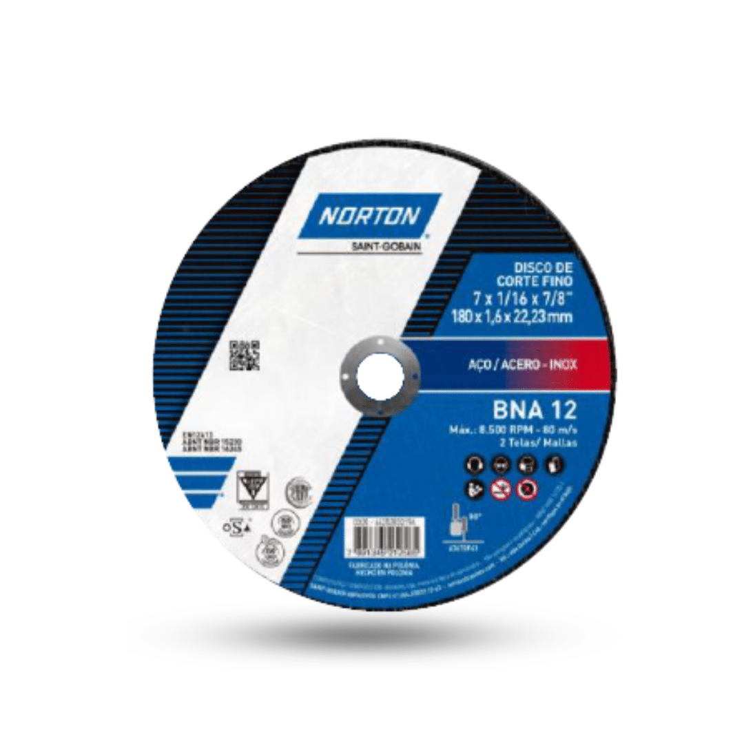 El DISCO DE CORTE BNA 12 es un abrasivo para corte de acero carbono y acero inoxidable en procesos de mantenimiento industrial Fabricado con granos especiales, este producto tiene un elevado desempeño en máquinas de alta y baja potencia desarrollado con alta tecnología y granos abrasivos especiales, proporcionando una excelente durabilidad y muy alto rendimiento. Son indicados para uso en el montaje y mantenimiento de industrias, refinerías, industrias alimentarias y de bebidas.