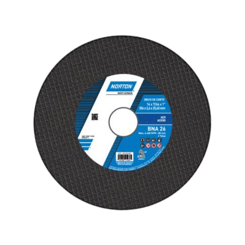 El disco tronzadora BNA 26 Norton ofrece cortes libres, no quema la pieza y no produce rebabas, brinda mayor vida útil y rapidez de corte que un disco para corte