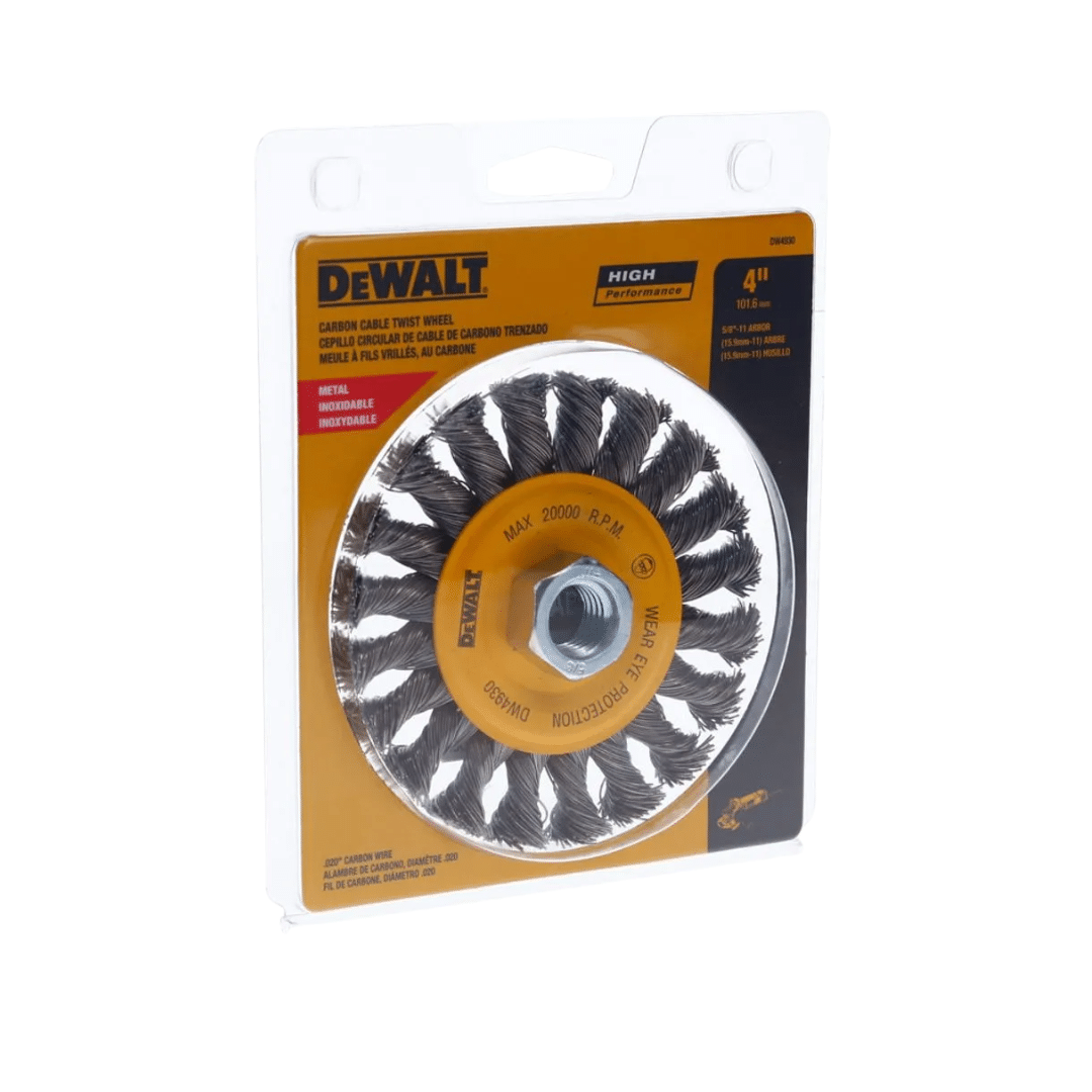 La GRATA CIRCULAR TRENZADA 4″ DEWALT cuenta con un alambre de acero inoxidable o carbono tratado térmicamente de alta resistencia.